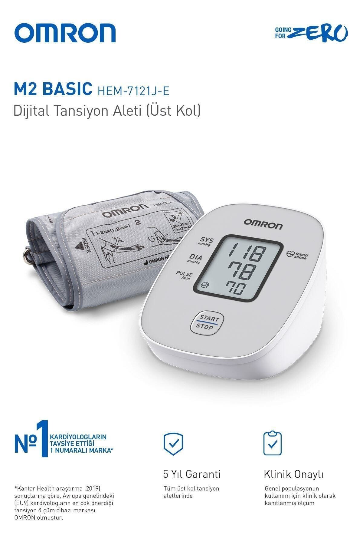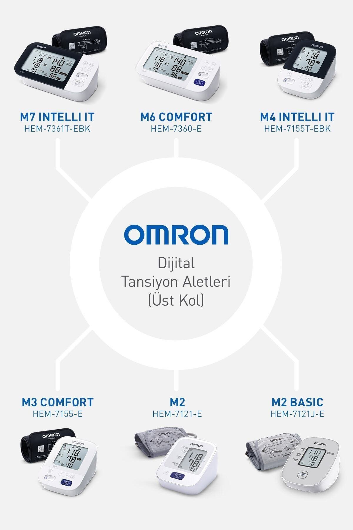 M2 Basic Hem-7121J-E Dijital Tansiyon Aleti, üst koldan rahat ve doğru tansiyon ölçümü sağlar. Kompakt ve