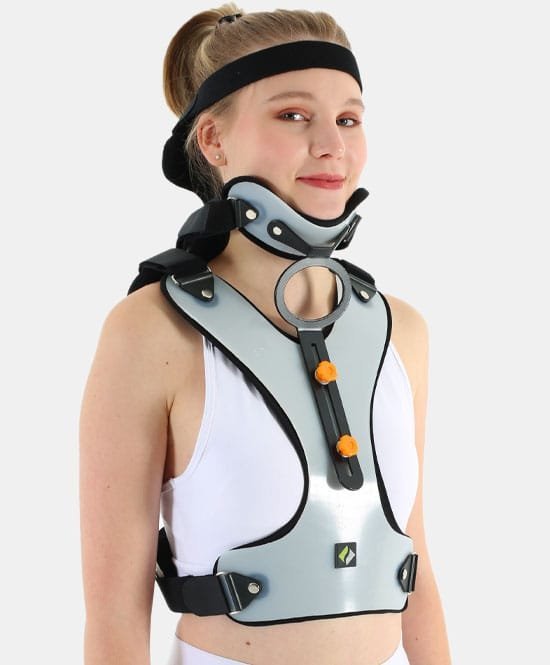 Polietilen plastik ve pamuklu kumaş malzemeden üretilmiştir. Çok parçalı bir şekilde boyuna ve üst gövdeye uygulanan boyunluk, boyun hareketlerini omuz ve üst gövde elemanlarından da destek alarak istenilen pozisyonda kısıtlar. Ayarlanabilir mekanizması sayesinde boyunun istenilen ekstansiyon ve fleksiyon açısını tam ve güvenli bir şekilde uygulanmasına yardımcı olur.