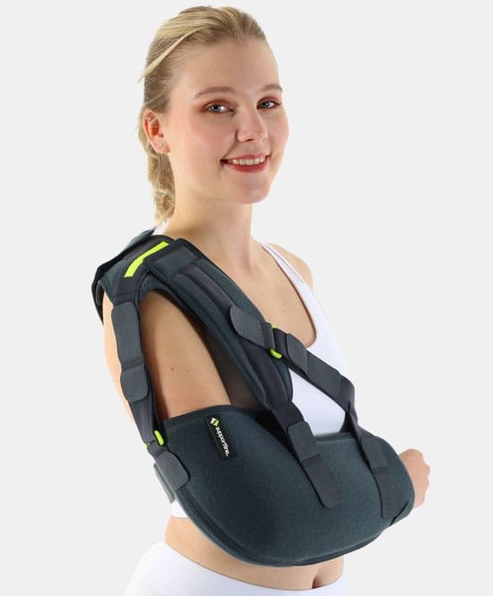 Akromio ve klavikula arasında stabilizasyon sağlar. Genelde humerus operasyonlarından sonra stabilizasyon için kullanılır. Omuz pedi yükün dengeli dağılımını sağlar. Döner tokalı sistem ürünün rahat kullanımına olanak sağlar.